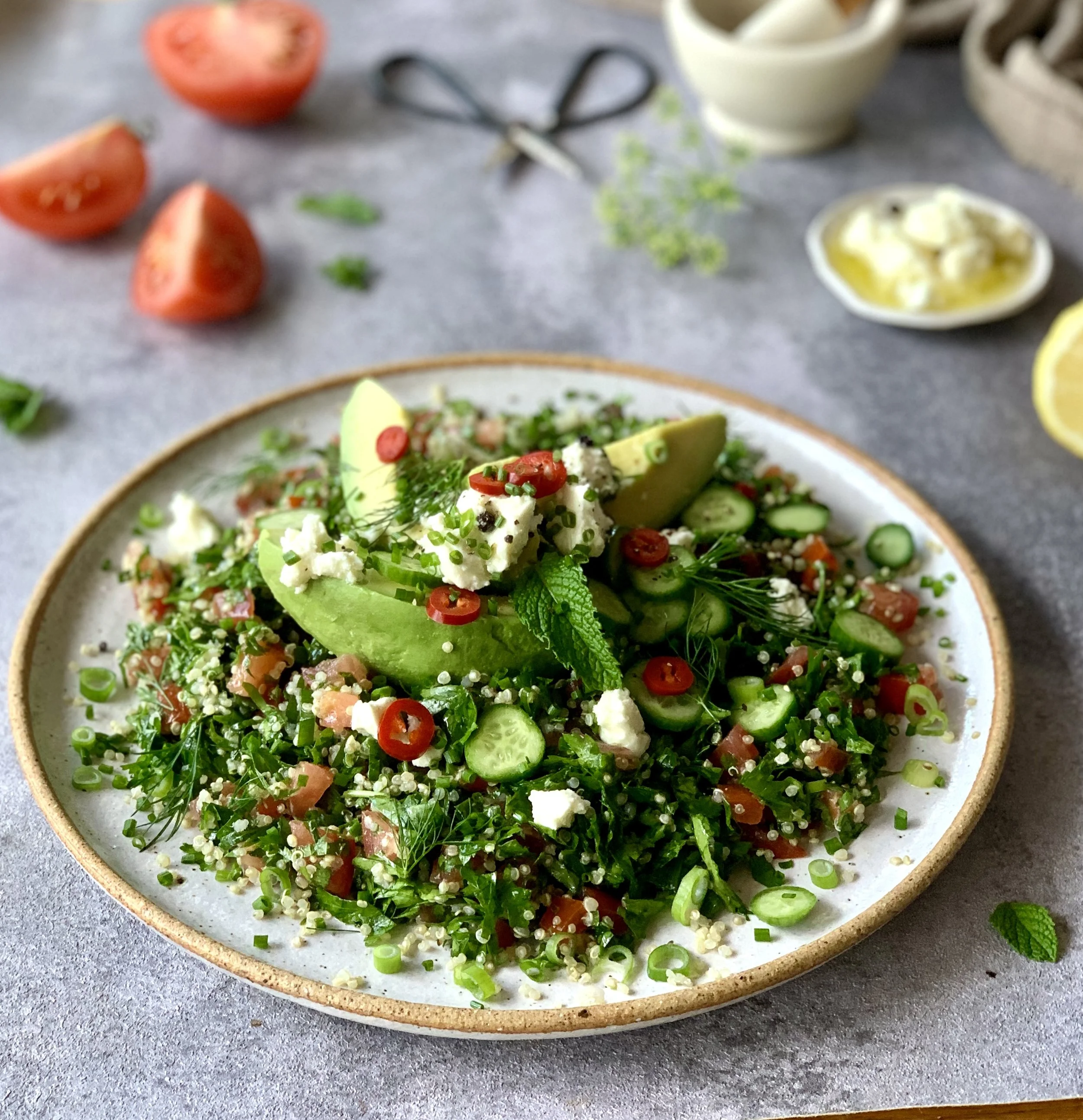 Loaded Quinoa Tabbouleh with Avocado and Goat's Cheese